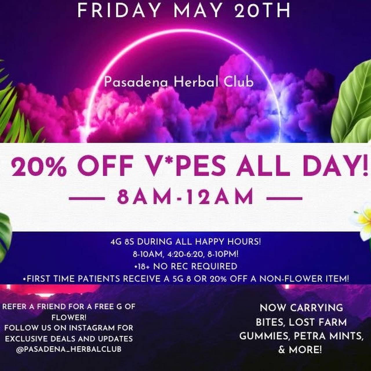 Pasadena Herbal Club 84 reviews Cannabis Clinics Dispensaries None The vibes are so great friendly budtenders always hooking you up with the good stuff See all Pasadena Herbal Club reviews 420 Altadena 25 Cap 73 reviews Dispensaries None. Pasadena herbal club cannabis dispensary. First time patients choose between a 5g 8 or 20 off a non-flower item.
